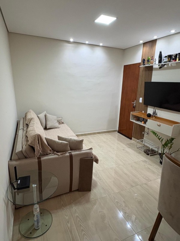 O imóvel conta com 2 quartos, sala ampla, cozinha e área de serviço com armários planejados, oferecendo praticidade e organização.